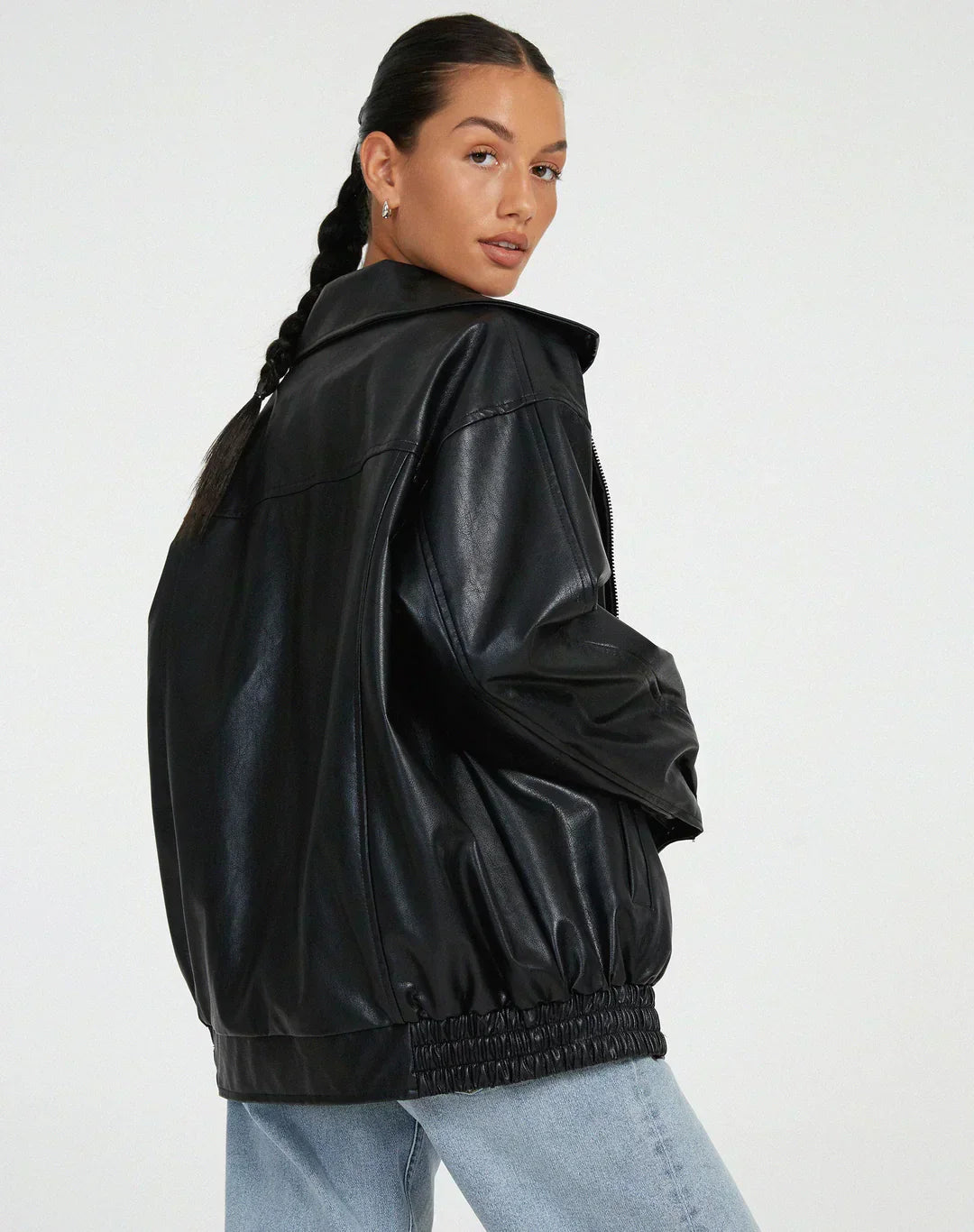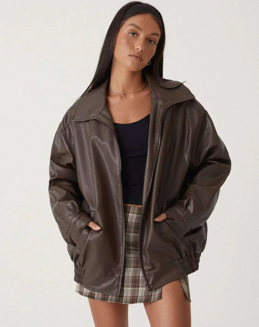 Fabriquée à partir d’un matériau haut de gamme qui imite parfaitement l’apparence et la texture du cuir véritable, cette veste offre un toucher doux et une finition luxueuse. Résistante et durable, elle conserve son éclat et son allure élégante au fil du temps.